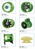 Loại dẫn động trực tiếp và gián tiếp, đường kính quạt đến 2,000mm với các cánh điều chỉnh được, làm bằng nhôm (ALU), GRP (Glass Reinforced Polypropylene), GRN (Glass Reinforced Nylon), lưu lượng đạt đến 360,000m3/h. Nhiệt độ làm việc của các lọai cánh: ALU: -40oC - 200oC GRN: -40oC - 150oC GRP: -40oC - 70oC ADT: Loại thân dài, truyền động trực tiếp, dùng để thông gió và trong các trường hợp hút không khí có lưu lượng lớn ở cột áp thấp và trung bình. ADS: Loại thân ngắn, truyền động trực tiếp, dùng để thông gió và trong các trường hợp hút không khí có lưu lượng lớn ở cột áp thấp và trung bình. ADB: Quạt Bifurcated, truyền động trực tiếp, dùng để hút khói nóng, các loại hơi có tính ăn mòn, gas và khí bẩn. ADM: truyền động trực tiếp, đầu hút loại vòi phun dùng để hút khí, hơi và gas. ABE: truyền động gián tiếp, đặc biệt dùng để hút các loại gas có hại cho sức khỏe và lưu lượng lớn ở cột áp thấp và trung bình ARD: truyền động trực tiếp, cánh đặt đứng, chân đế vuông bắt có độ dốc, thích hợp lắp đặt trên mái nhà. Quạt bằng thép mạ kẽm, có che chắn thích hợp với điều kiện ngoài trời. |