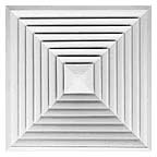 Miệng gió thổi 4 hướng gồm khung bao ngoài, lõi 4 hướng tháo/lắp được gồm các cánh lắp nghiêng cố định được thiết kế lắp ngang. Lõi này được định vị và tháo ra bằng chốt lò xo bắt vào khung. Vật liệu: Nhôm định hình. Kích thước tiêu chuẩn (kích thước cổ): Nhỏ nhất: 150 x 150mm Lớn nhất: 600 x 600mm |